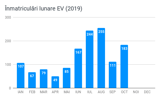În cele 10 luni din 2019 s-au înmatriculat deja cu peste 100 de vehicule mai mult decât valoarea însumată a tuturor anilor anteriori.