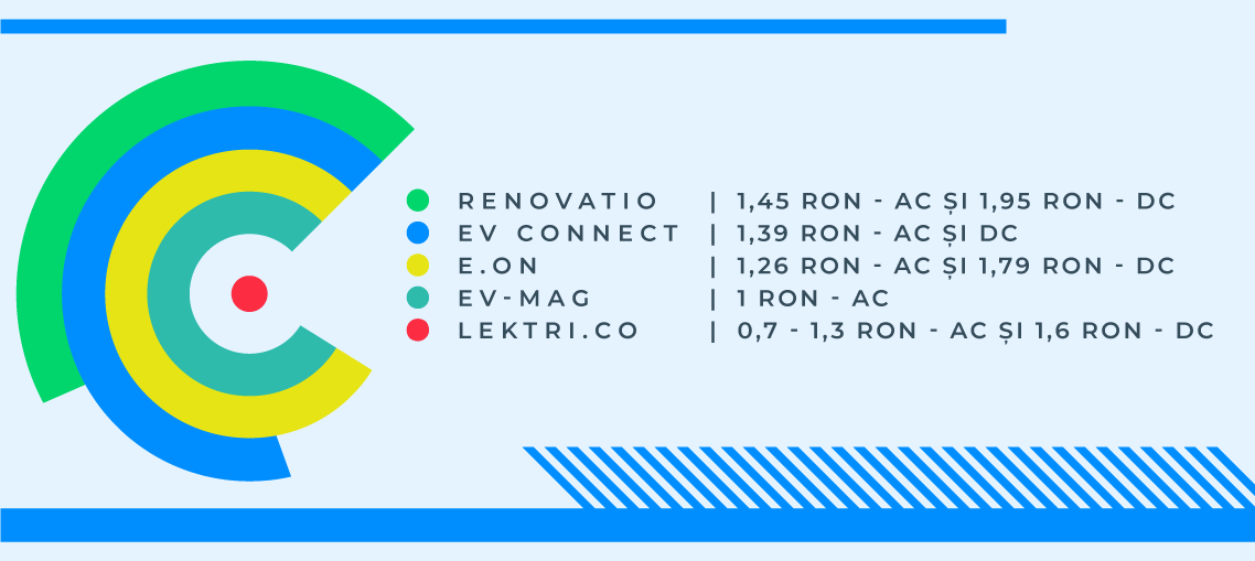 În studiul realizat de echipa LEKTRI.CO, în perioada august 2020 – aprilie 2021, s-a remarcat principalii jucători, lideri în ceea ce privește extinderea rețelei de stații, precum Renovatio și EV Connect, sau gratuitatea la încărcare pe care unii dintre ei o oferă în anumite locații.
