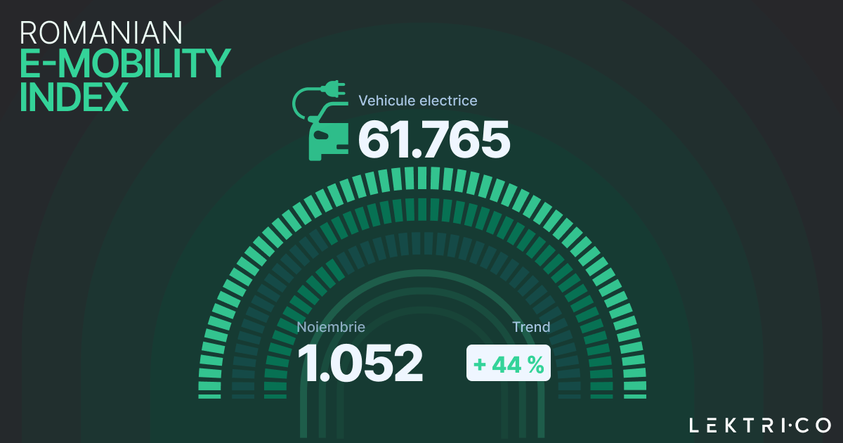 În noiembrie 2025 s-au înmatriculat 1.052 autoturisme electrice noi, iar acestea reprezintă 7,58% din totalul de 13.882 autoturisme înmatriculate. Aceasta reprezintă o scădere de 510 unități față de luna precedentă. În termeni procentuali, numărul de înmatriculări EV din noiembrie a fost cu -32,65 % mai mic decât cel înregistrat în octombrie.