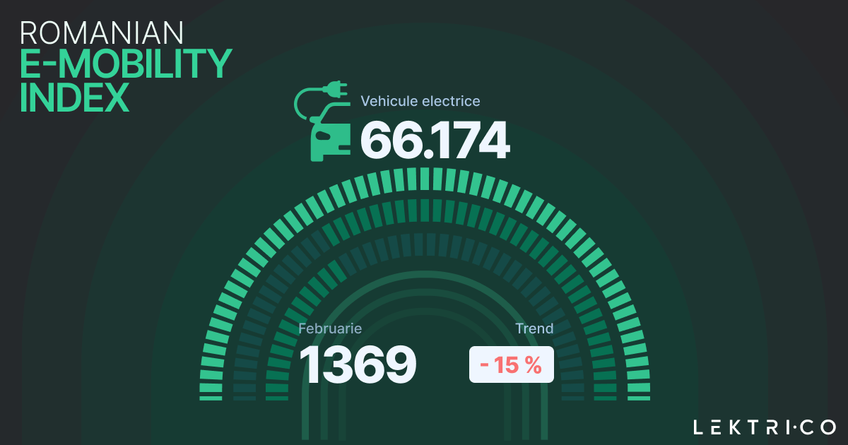În Februarie 2026 au fost înmatriculate 1.369 vehicule electrice validate, dintre care 1.308 autoturisme și 61 autoutilitare electrice. Raportat la totalul de 44.226 vehicule înmatriculate în documentele analizate, indiferent de motorizare, EV-urile au reprezentat 3,1% din totalul lunii.